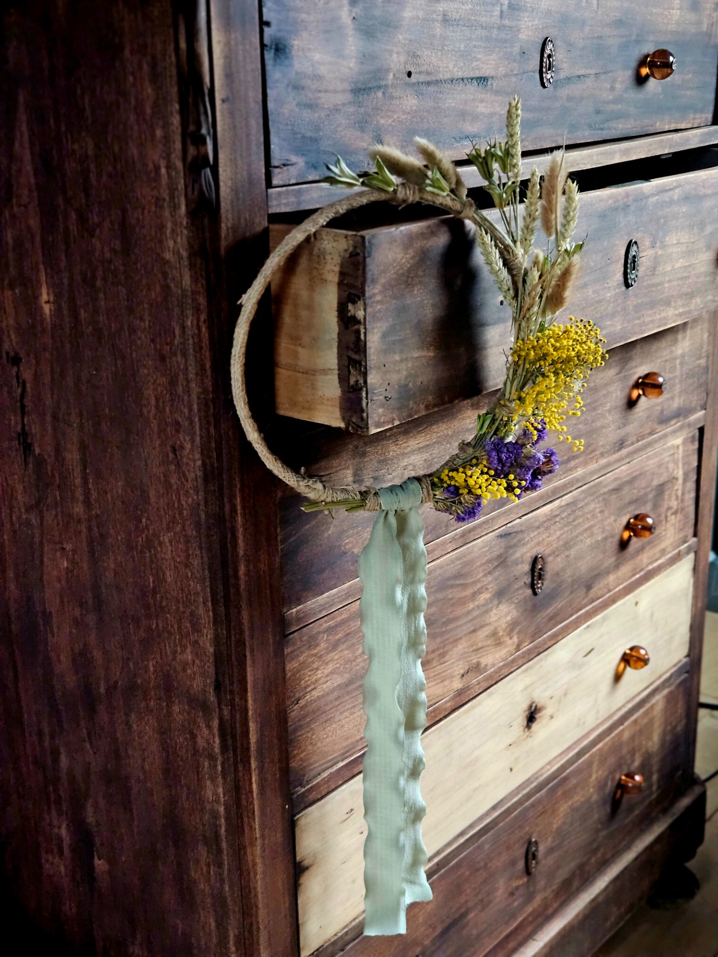 Met een boog van droogbloemen breng je direct sfeer in huis. Zachte kleuren, natuurlijke vormen en een tijdloze uitstraling maken elke boog een echte blikvanger. Perfect boven een wiegje, aan de muur of als eyecatcher in je interieur. Met liefde handgemaakt om jouw plek nog meer 'thuis' te laten voelen.